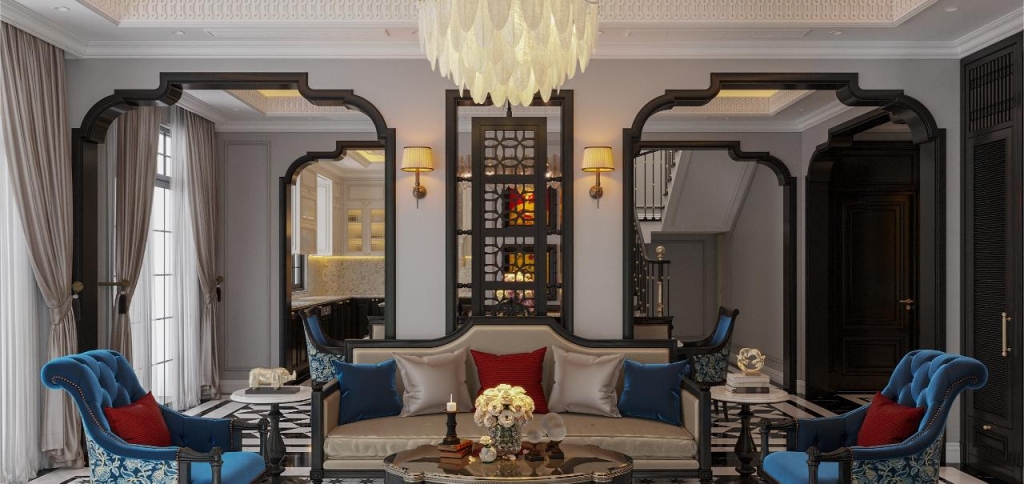 Mẫu thiết kế nội thất phòng khách biệt thự.